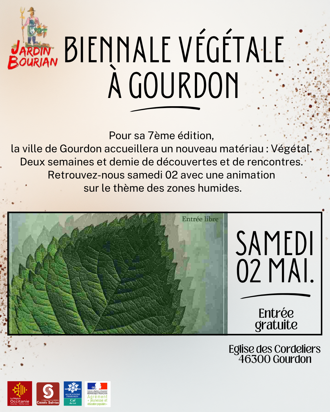 Animation aux Biennale végétale à Gourdon samedi 2 mai 2026 14:00 17:00 46300 Gourdon France (carte) Google Agenda ICS