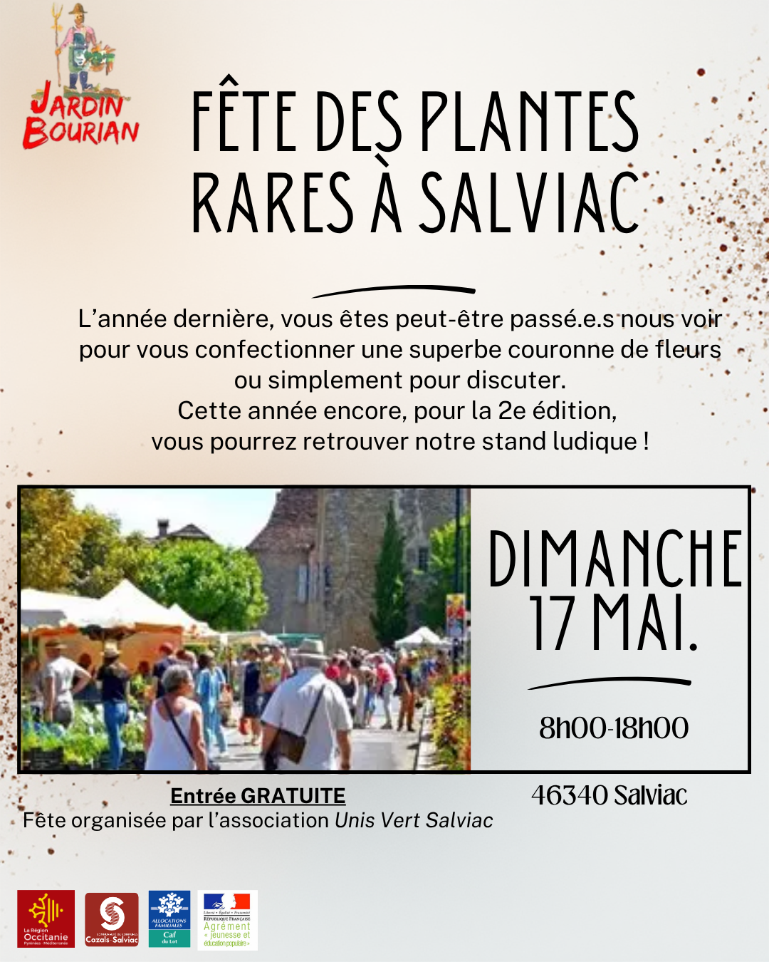 Animation à la Fête des plantes rares à Salviac dimanche 17 mai 2026 08:00 18:00 46340 Salviac France (carte) Google Agenda ICS